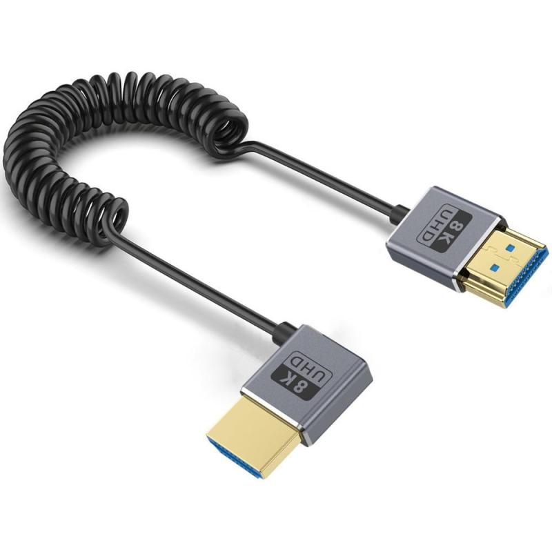 0.7m Coiled Coaxial 8K 48Gbps HDMI 2.1 Cable, Port:Left Bend