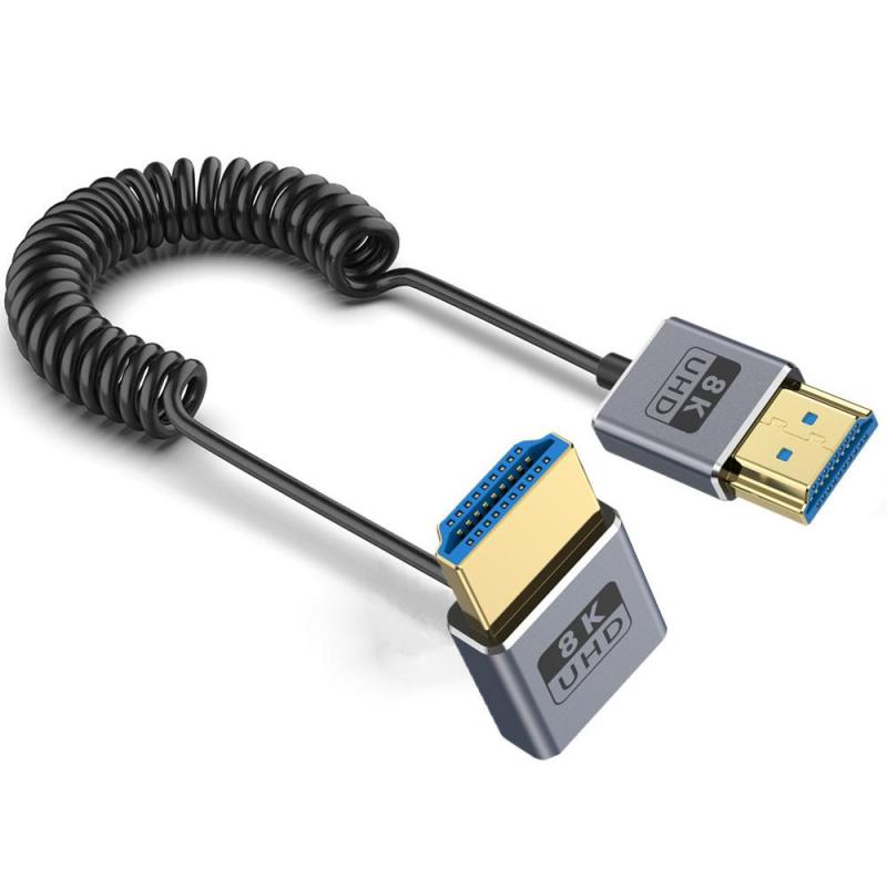 0.7m Coiled Coaxial 8K 48Gbps HDMI 2.1 Cable, Port:Upward Bend