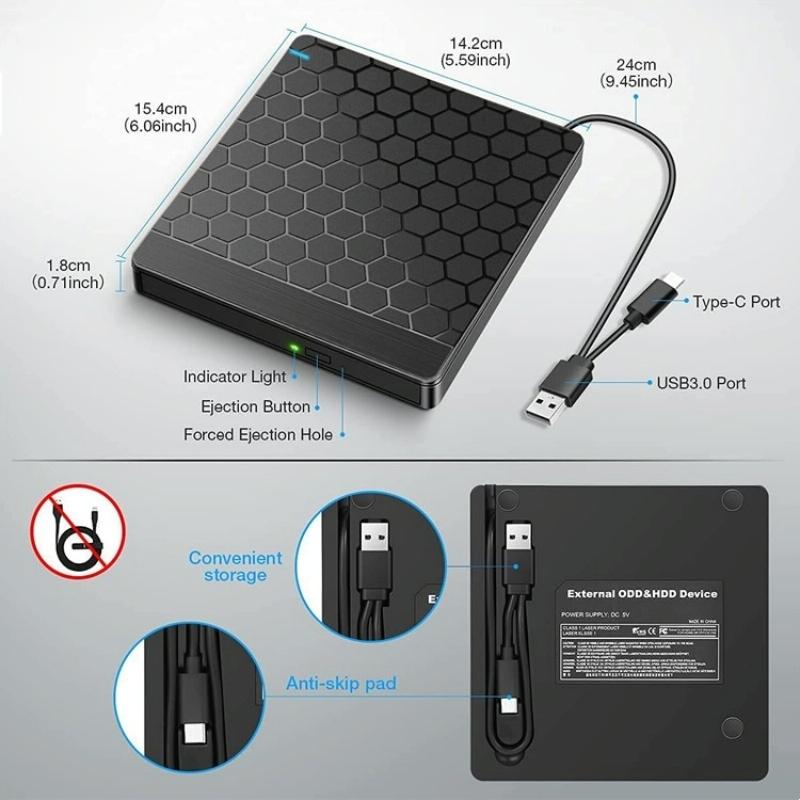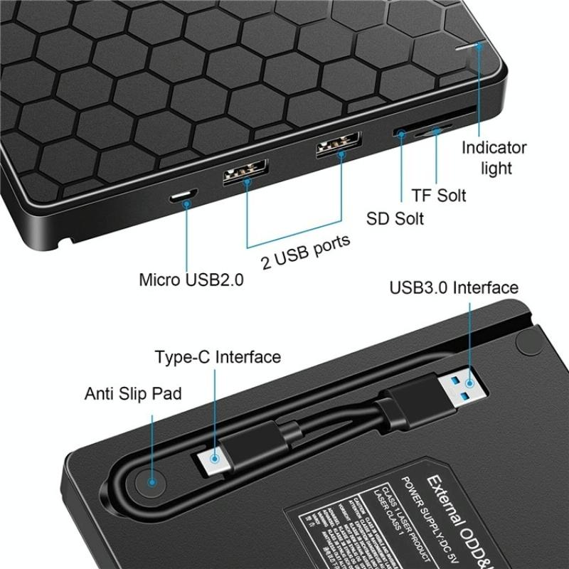 042 Football Pattern USB3.0 / Type-C Computer Laptop External Optical Drive Burner DVD Burner