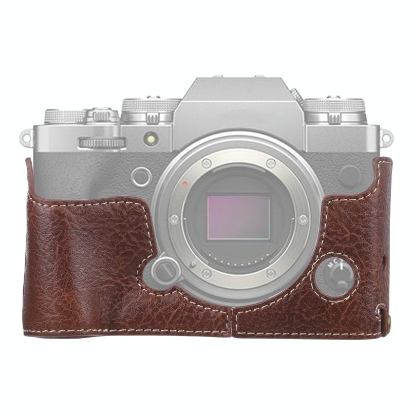 1/4 inch Thread Litchi Texture PU Leather Camera Half Case Base for FUJIFILM X-T4 (Coffee)
