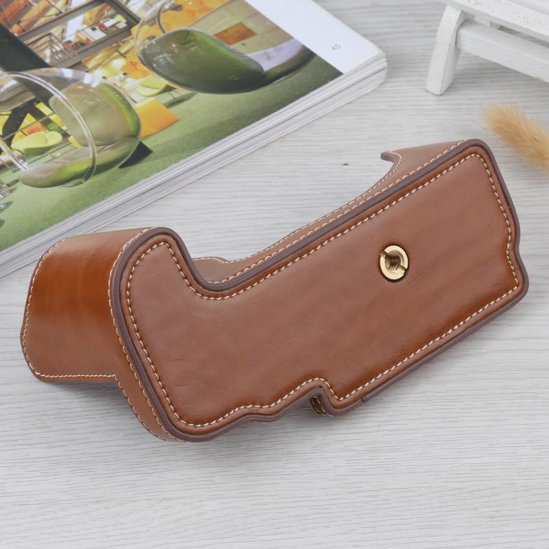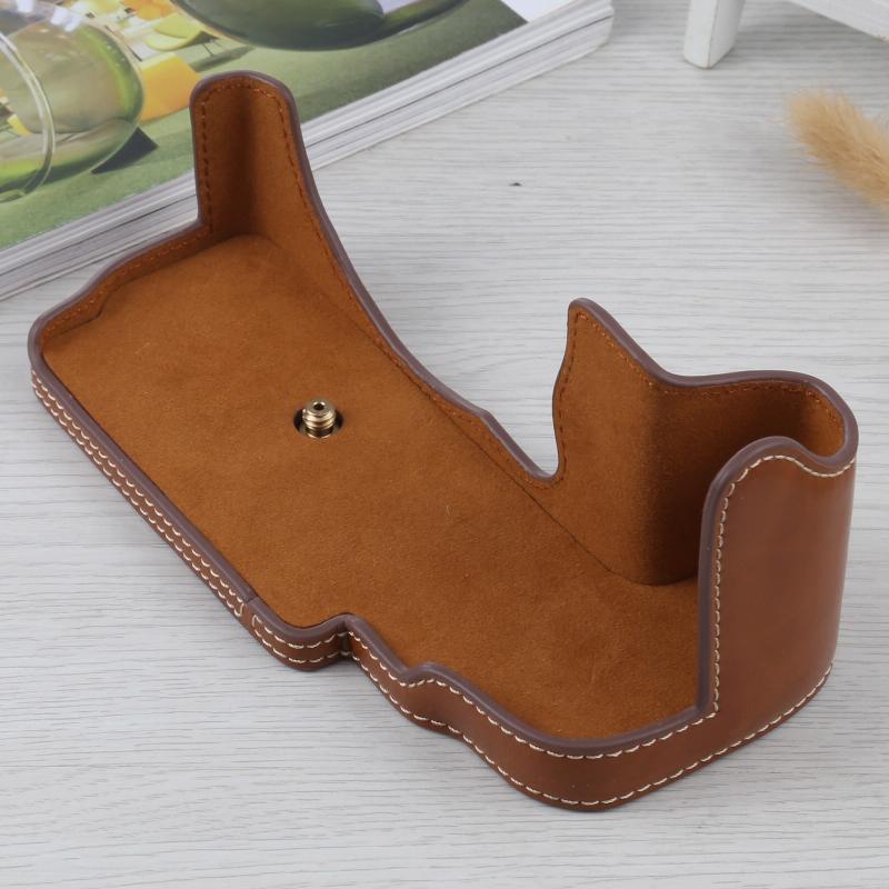 1/4 inch Thread PU Leather Camera Half Case Base for FUJIFILM GFX 50S (Brown)