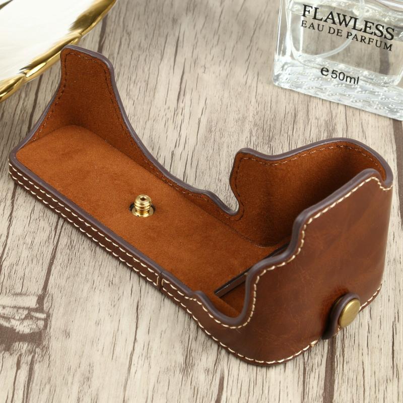 1/4 inch Thread PU Leather Camera Half Case Base for FUJIFILM X-S10 (Coffee)