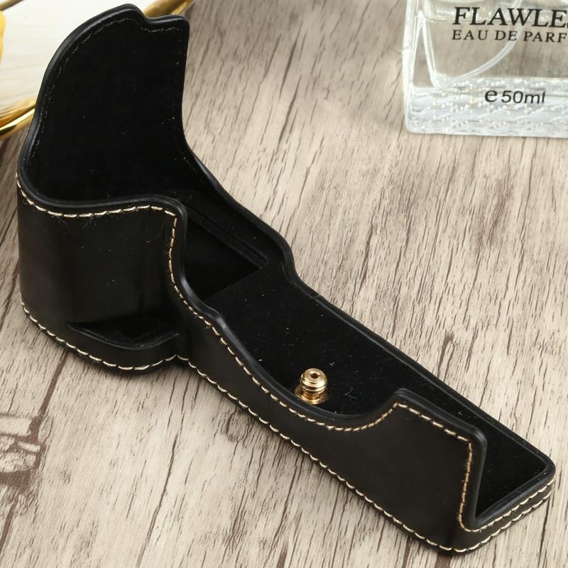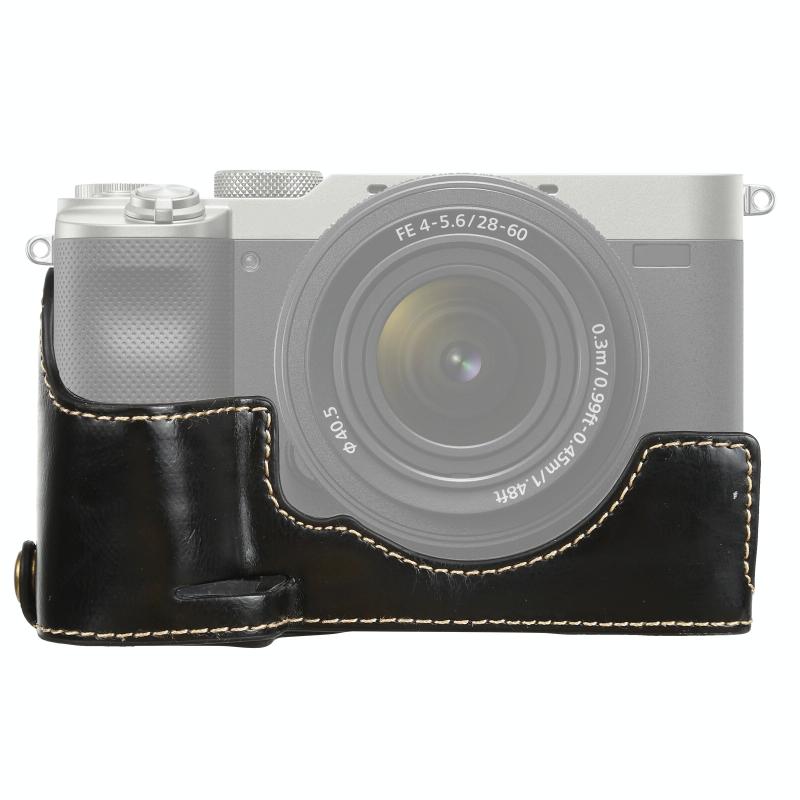 1/4 inch Thread PU Leather Camera Half Case Base for Sony ILCE-7C/A7C (Black)