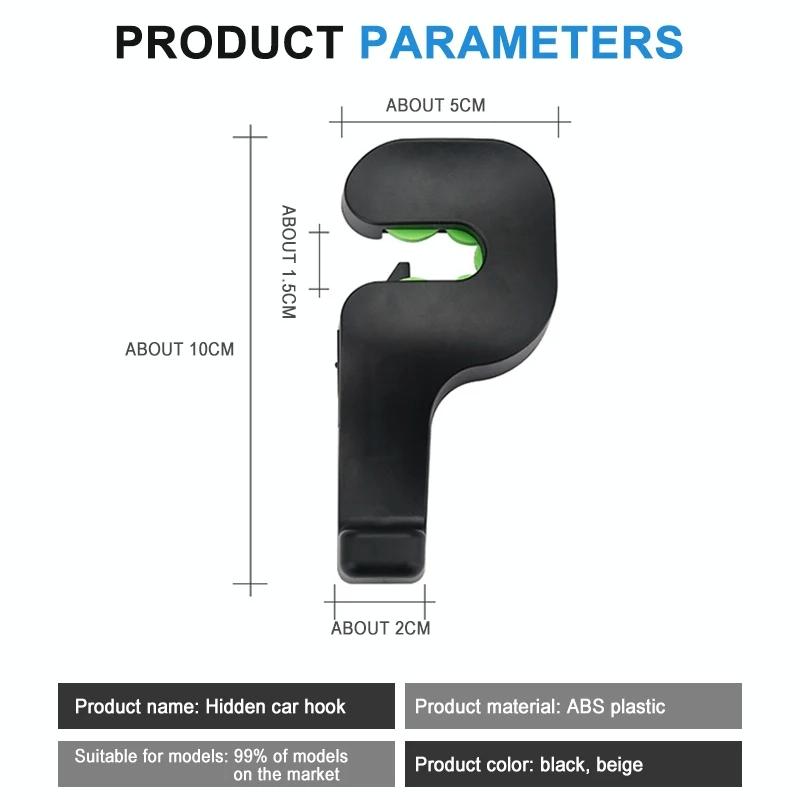 1 Pair Car Seat Back Hidden Hook (Black)