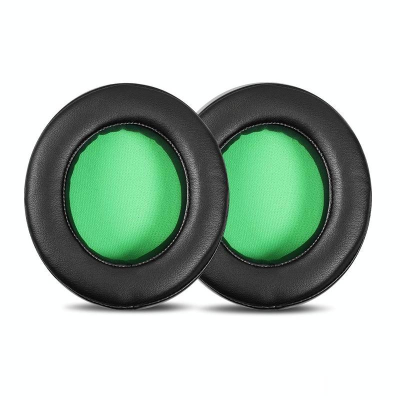 1 Pair Rotating Snap-on Replacement Earpads For Razer Kraken Pro V2, Material:Protein Leather(Black Green)