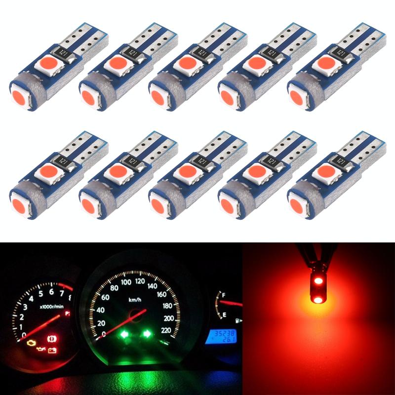 10 in 1 Car T5 0.2W DC12V Instrument Panel LED Decorative Light(Red Light)