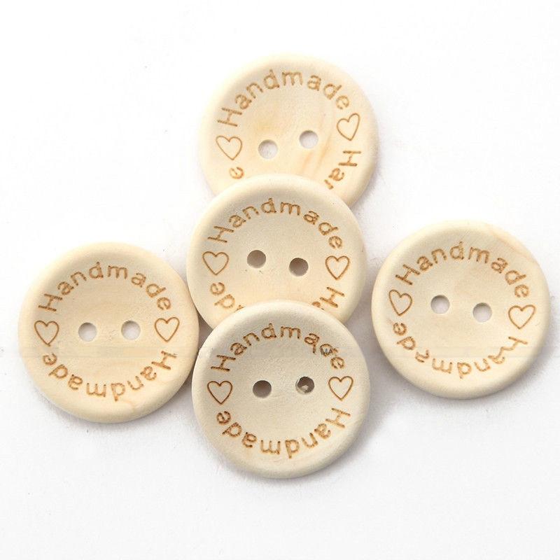 Handmade with love Buttons Scrapbooking Sewing Button Natural Wood