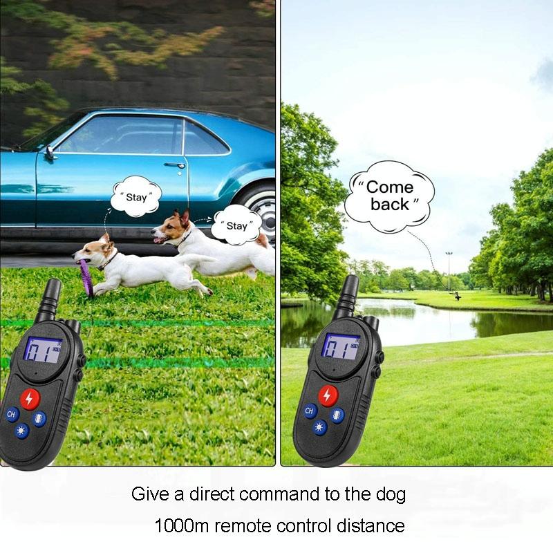 1000m Remote Control Intercom Dog Trainer Electric Shock Vibration Stop Barker(Black)