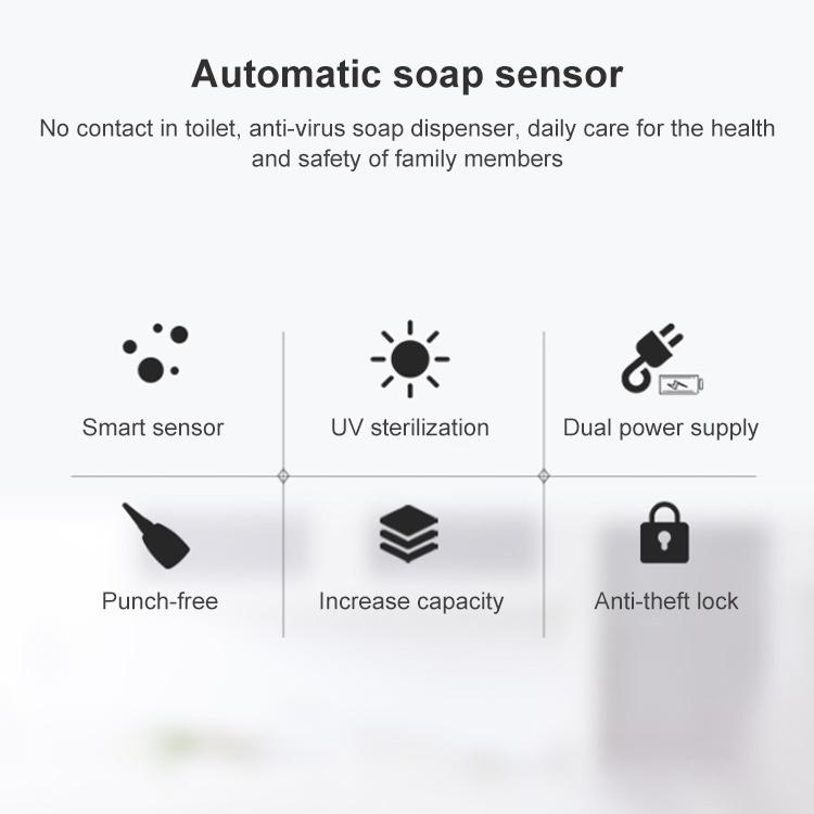 7. Features: reach out to produce bubbles, UV disinfection, effective bacteriostasis, hole-free installation; dual power supply mode, large-capacity window. It integrates disinfection, soap liquid and foam into one, and supports multiple liquid addition methods. It has the advantages of stable and reliable operation, strong resistance to light source interference, sensitive induction, etc., low-energy-consumption drive circuit design, which makes the battery life longer, and is an ideal choice for public places.