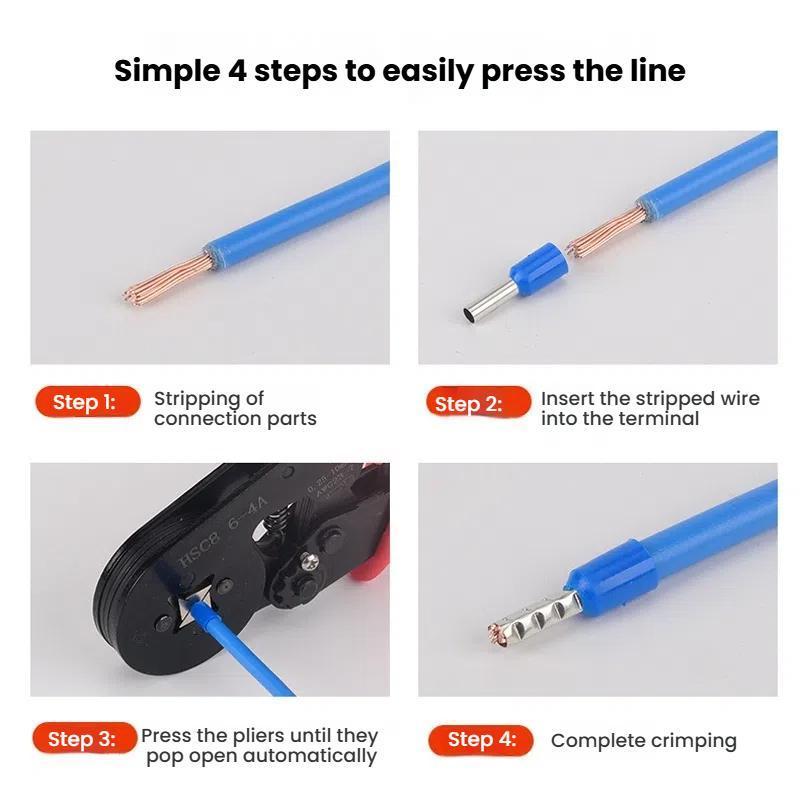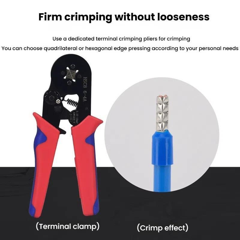 6. Use special terminal crimping pliers for crimping, and you can choose quadrilateral or hexagonal edge-wrapped crimping according to personal needs