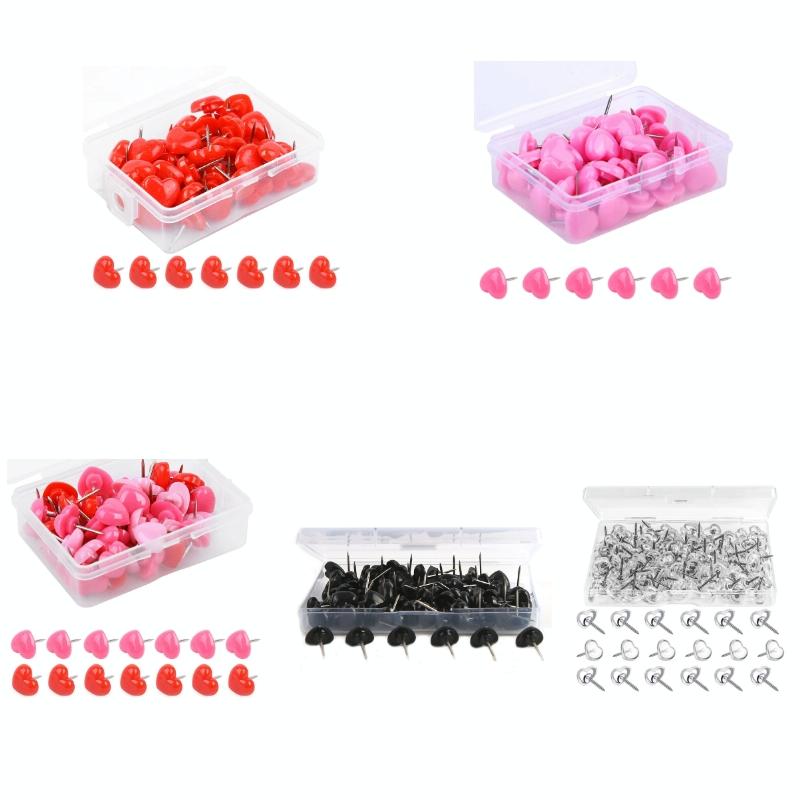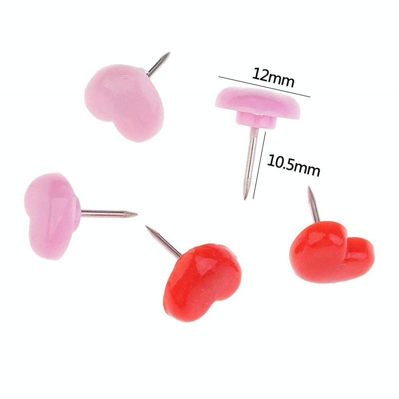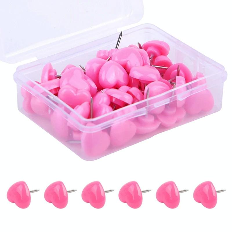 100pcs /Box 10.6x7.8x1.8cm Love Plastic Studs DIY Office School Colorful Pins(Pink)