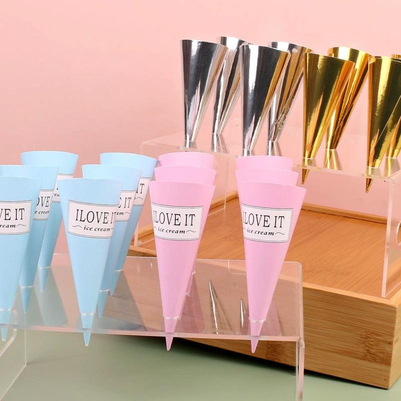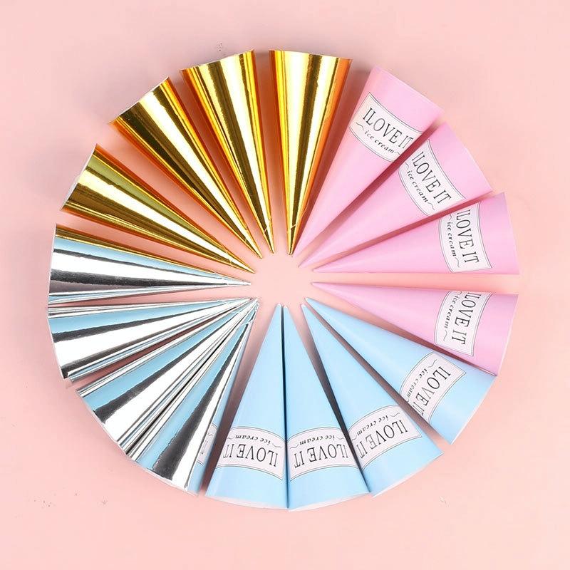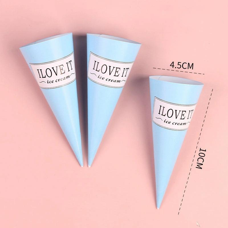 100pcs Disposable Ice Cream Paper Holder Sweet Crispy Tip Bottom Paper(Blue Letter)