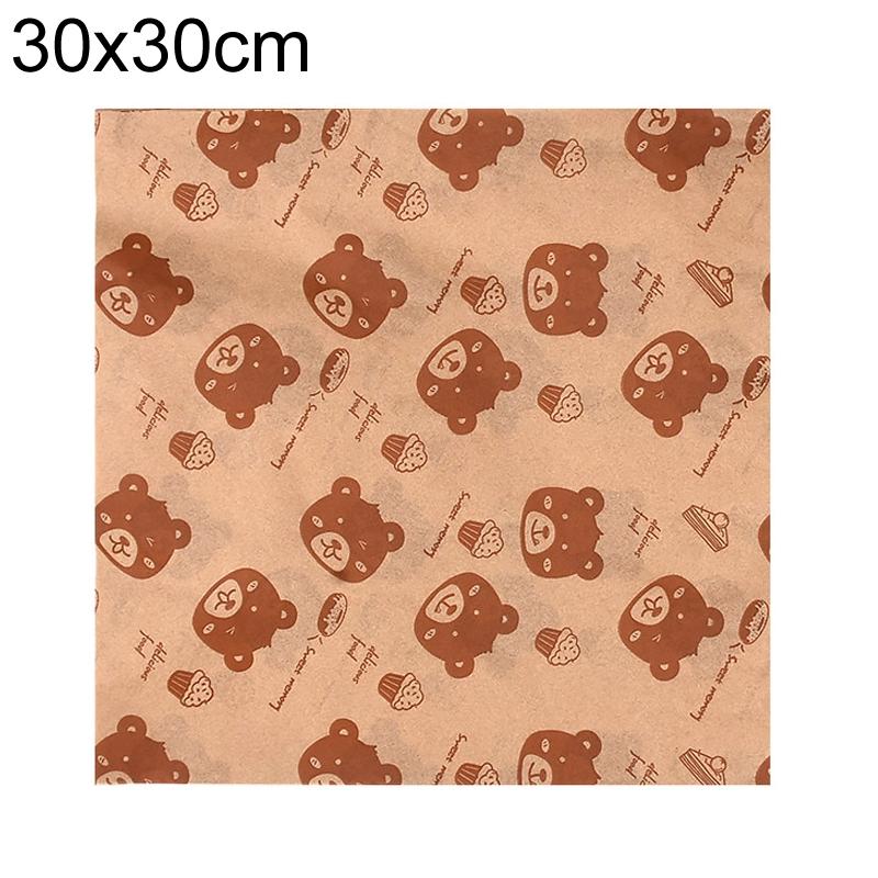 100sheets /Pack Bear Pattern Greaseproof Paper Baking Wrapping Paper Food Basket Liners Paper 30x30cm
