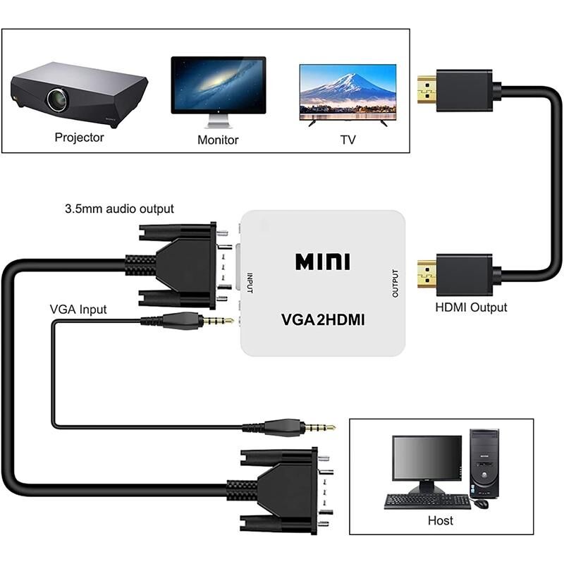 The MINI VGA2HDMI 1080P scaler box is designed to uoscale analog video signal from PC input source to digital HDMI output, up to 720p or 1080p. Besides video upscaling, the scaler box also converts input audio signal from L / R to digital formats, then output to HDMI combining with the video