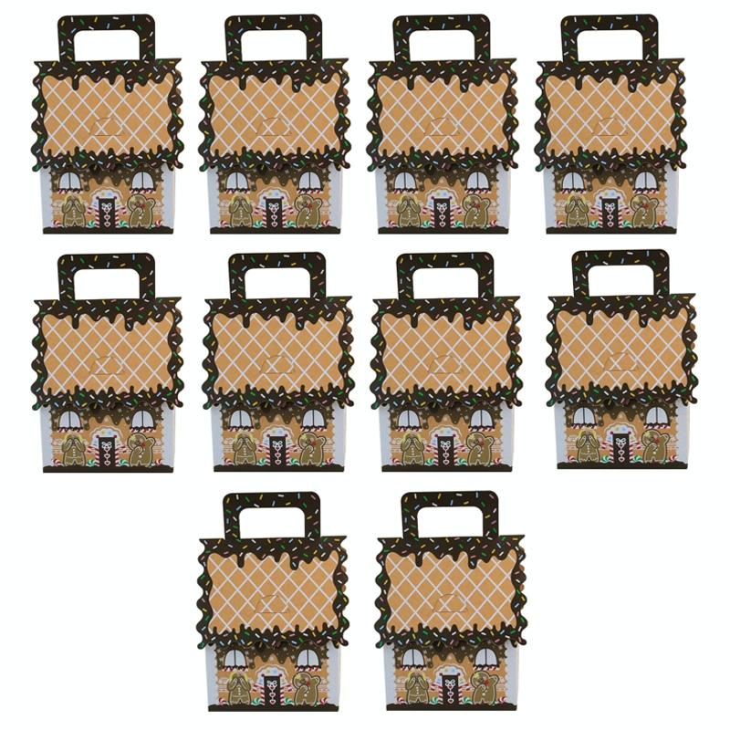 10pcs Christmas Candy Boxes Kraft Paper Christmas House Handbag Candy Boxes, Style: Small Brown Edge