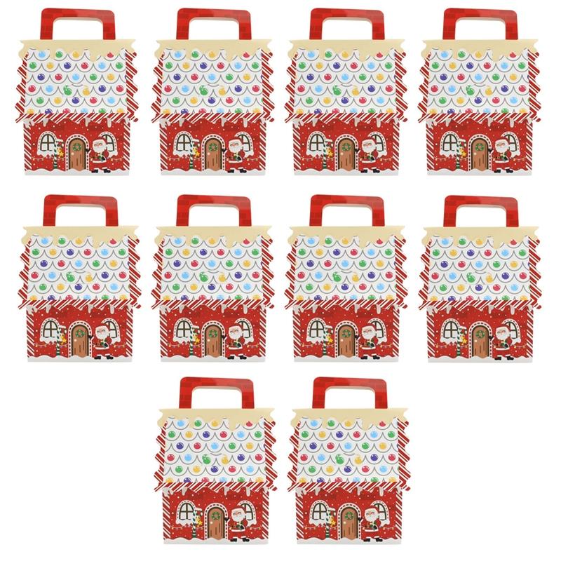 10pcs Christmas Candy Boxes Kraft Paper Christmas House Handbag Candy Boxes, Style: Small Red Base