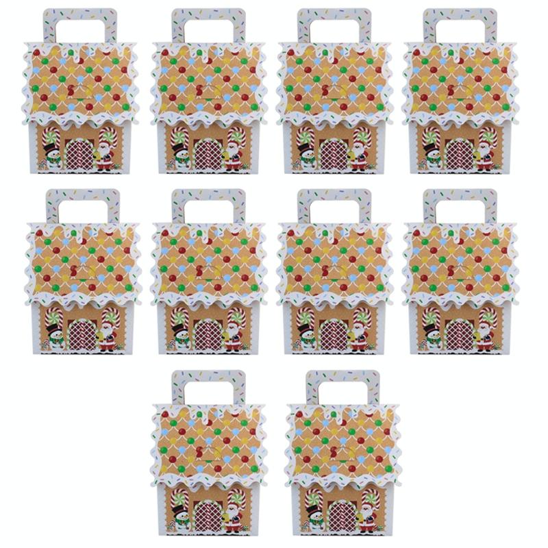 10pcs Christmas Candy Boxes Kraft Paper Christmas House Handbag Candy Boxes, Style: Small White Edge