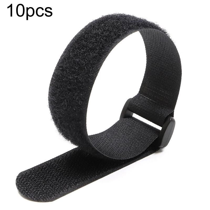 10pcs Nylon Cable Storage Snap Tape Reverse Buckle Type Fixed Packing Strap, Model: Black 20 x 200mm