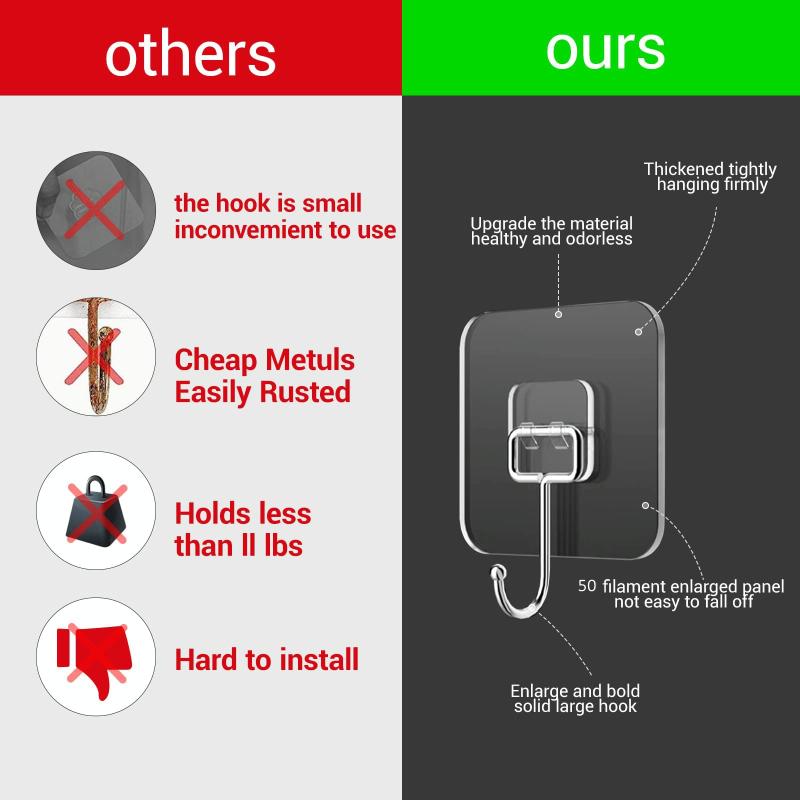 3. Sticky wall hooks are widely used on various smooth surfaces. Widely used in kitchens, living rooms, bedrooms, bathrooms, closets, decorations, etc., including ceiling hooks, coat hooks, key hooks, plant hooks, bathtub towel hooks, painting hooks, etc.
