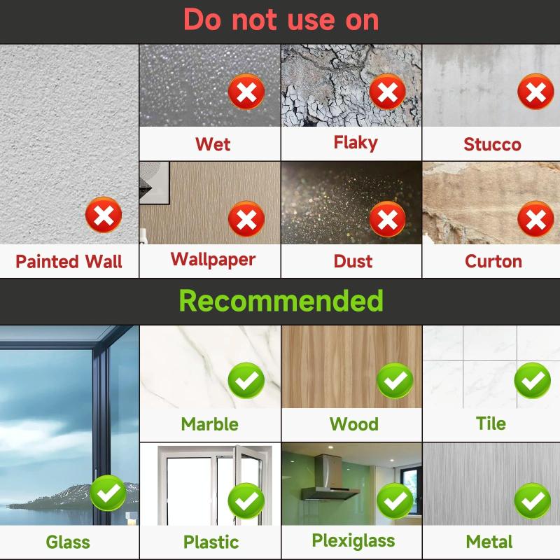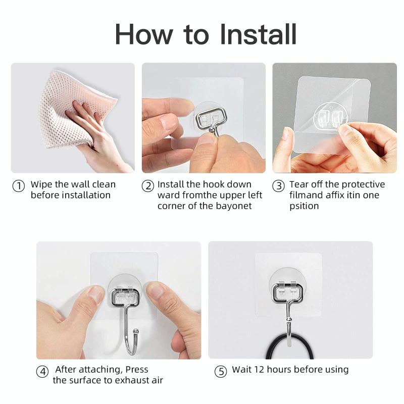 4. Easy to use, no need to nail or drill holes in the wall, just tear off the film on the back and stick it to the wall without damaging the installation. To remove, heat the PVC sheet of the hook with a hair dryer, and then slowly remove it from the wall without leaving any scratches or marks. If there is a sticky residue on the wall, it can be wiped with rubbing alcohol.