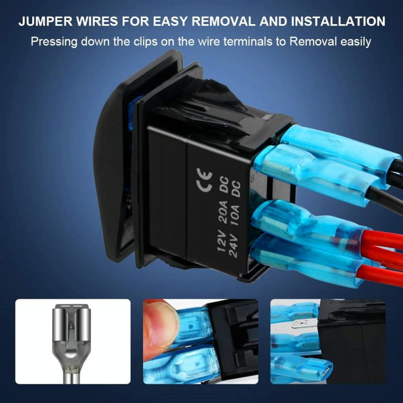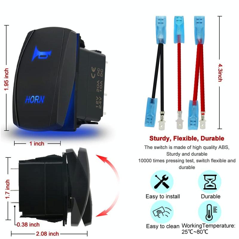 2. 5 Pin SPST on-off momentary switch, rated for 12V 20Amp and 24V 10Amp, mounting hole size suitable for most electrical equipment.
