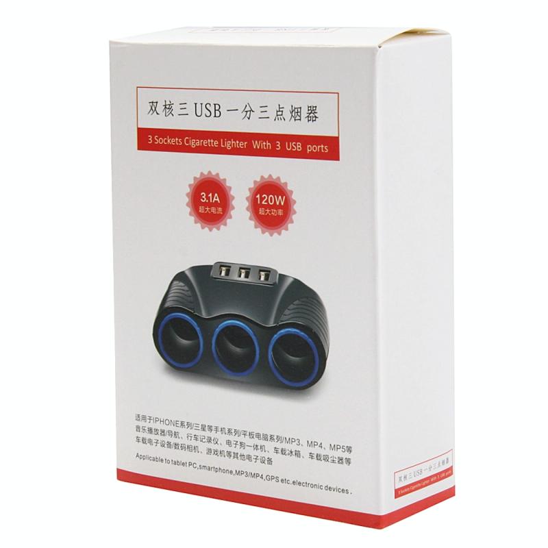 3. Three cigarette lighter holes and Three USB ports.