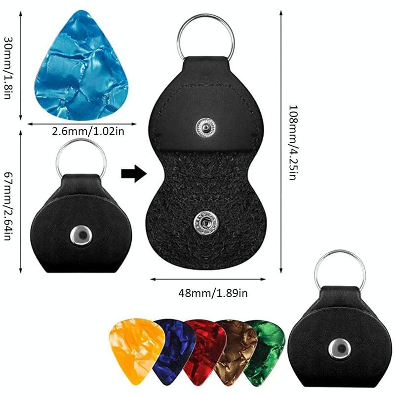1. Specification: pick bag x 2 (black and brown)+head band x 1(brown)+pick x 24(0.46mm10 pieces /0.71mm10 pieces /0.91mm4 pieces)+guitar straps to prevent tripping x 1(black)