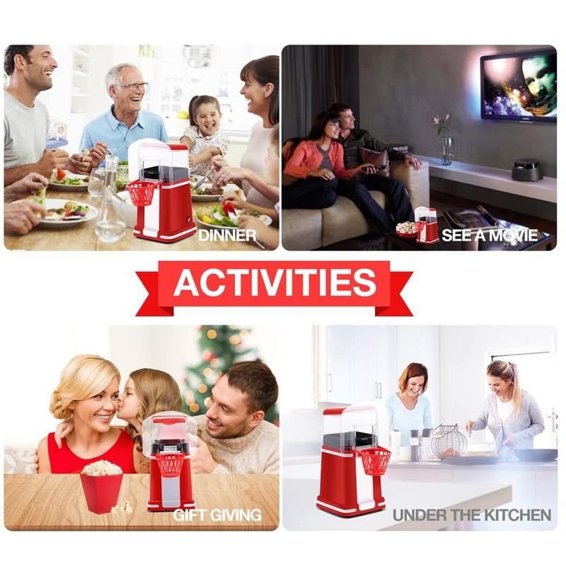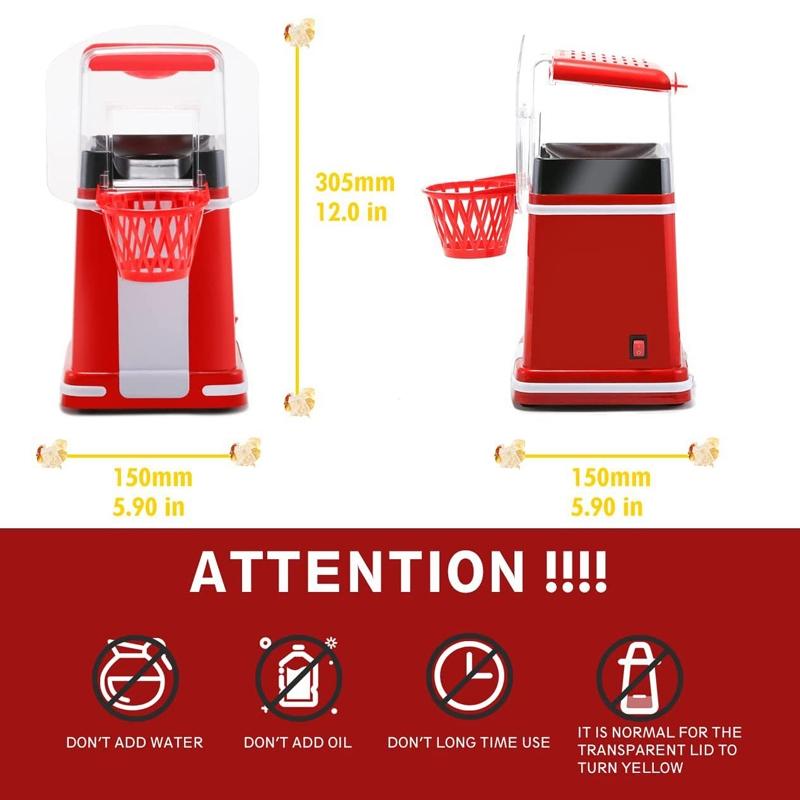2. This hot air popcorn popcorn machine uses hot air instead of oil to quickly pop fresh popcorn and enjoy delicious low-fat food.