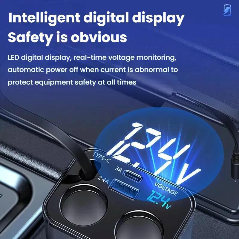 5. With its own retractable cable, you can pull it as long or short as you want, charging is faster, and it will automatically retract when you pull it, saying goodbye to the mess in the car