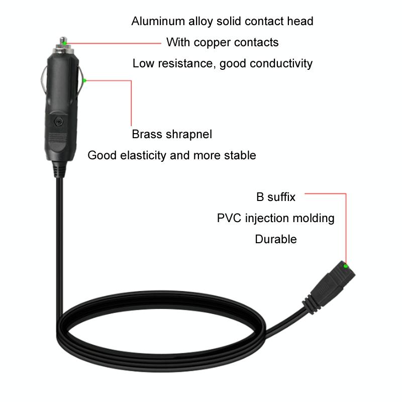 12V/24V Car Refrigerator Cable B Suffix Cigarette Lighter Plug Power Cord, Length: 1m Without Switch