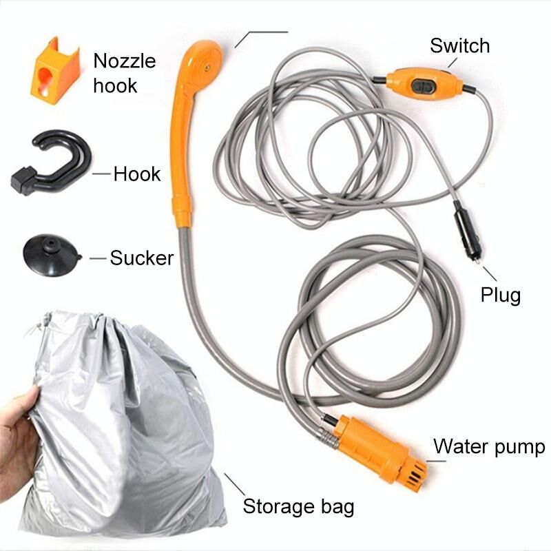 3. Direct 12V vehicle power supply drives the miniature pump,suitable for self-driving outdoor camping showers, temporary bathing after sea swimming, etc.