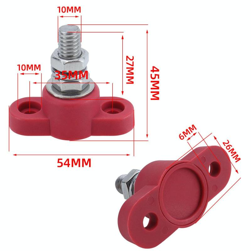7. The 3/8” M10 stud terminal design enables the 12V busbar terminal block to accept large-sized terminal connectors and wires