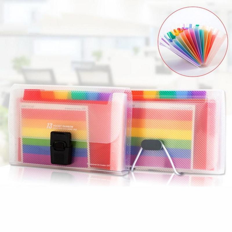 13 Grid Expanding File Folder A6 Document Buckle Lanyard Bag Multicolor Expanding File(Multicolor Buckle)