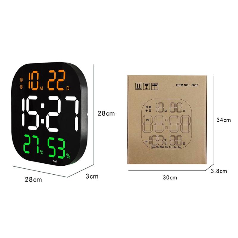 13-Inch LED Acrylic Electronic Clock Large-Screen Square Wall Clock With Timing Temperature Humidity(6632 White Light)