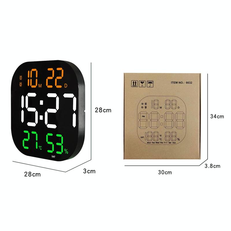 13-Inch LED Acrylic Electronic Clock Large-Screen Square Wall Clock With Timing Temperature Humidity(6632 White Red)