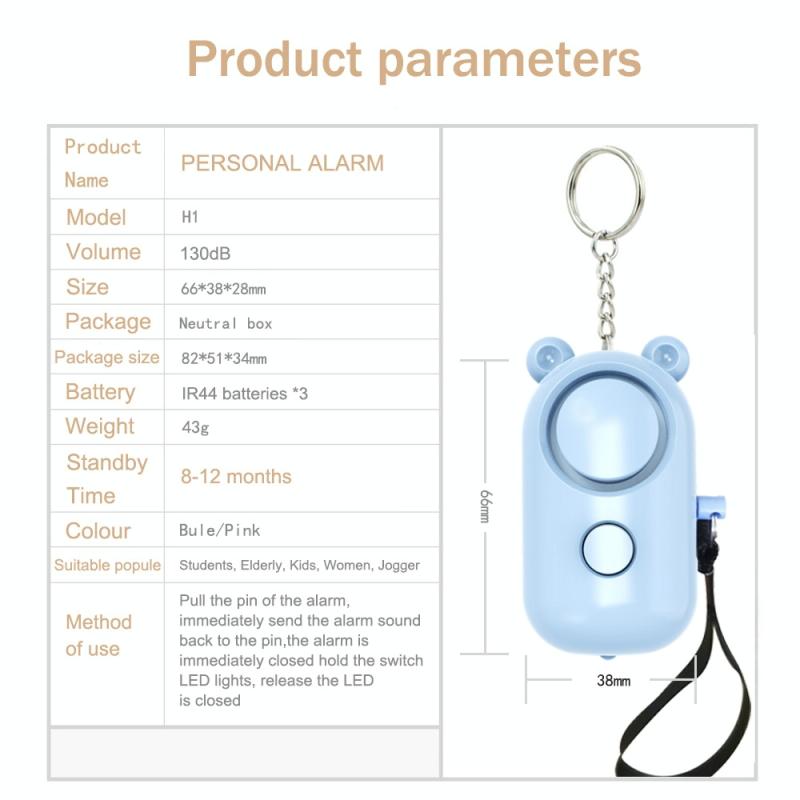 8. How to use: pull out the metal pin of the personal alarm, and the alarm will sound immediately; push back the pin, and the alarm will be turned off immediately; press and hold the switch to turn on the LED light, and release it to turn off.