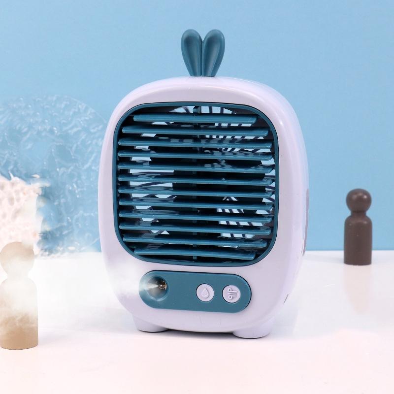 1315 Spray Humidification Hydrating Cartoon Fan USB Charging Desktop Fan(Bunny Blue)