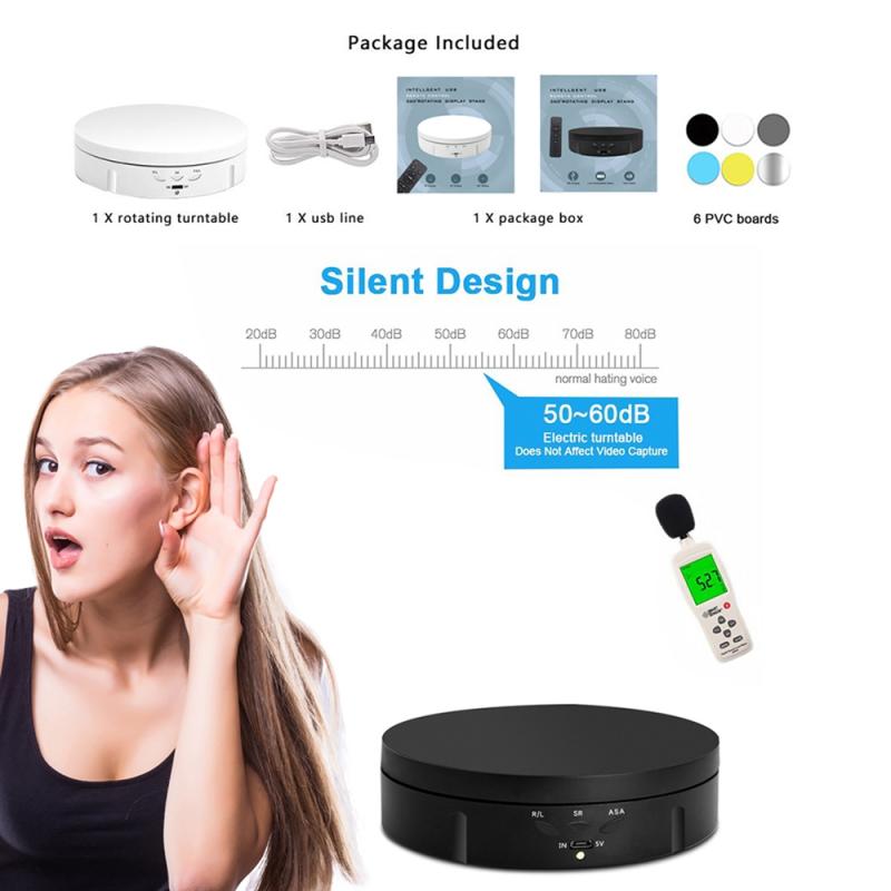 14.6cm Remote Mirror USB Electric Rotating Turntable Display Stand, Load: 10kg(White)