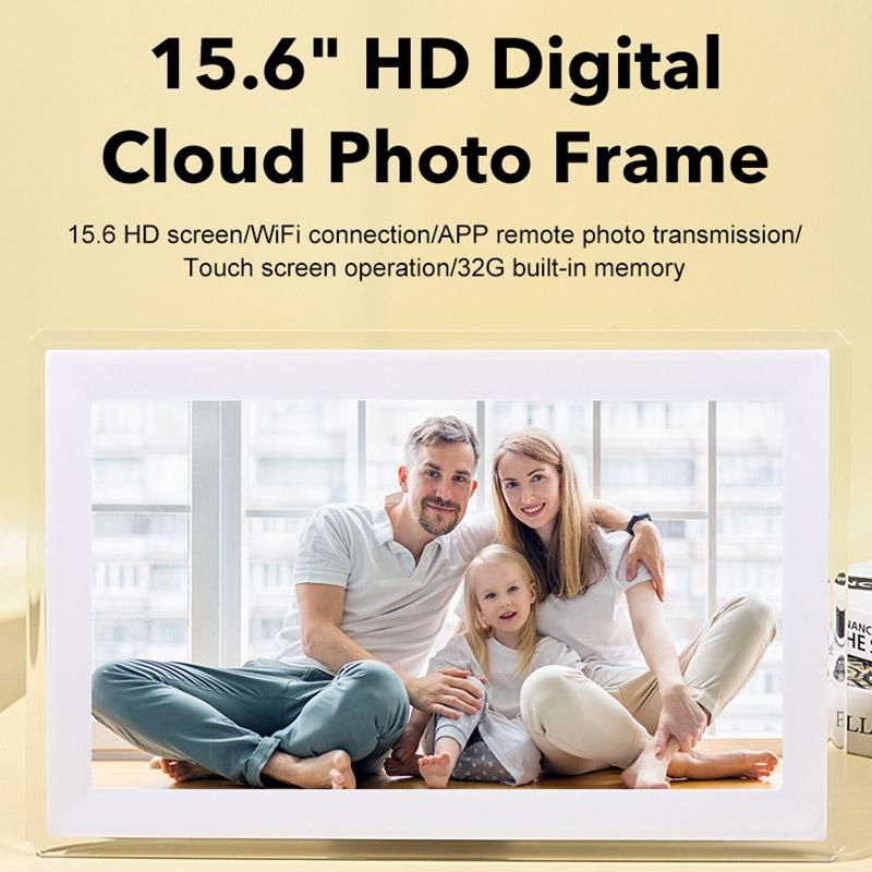 15.6 inch IPS Screen Digital Cloud Photo Frame Wall Mounted LED Advertising Machine, Plug Type:EU Plug(White)