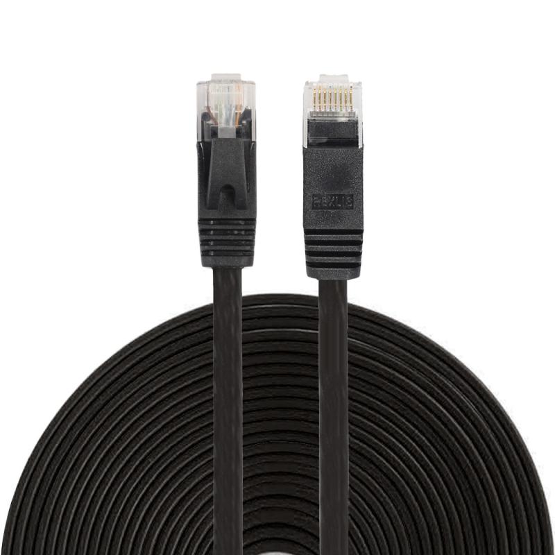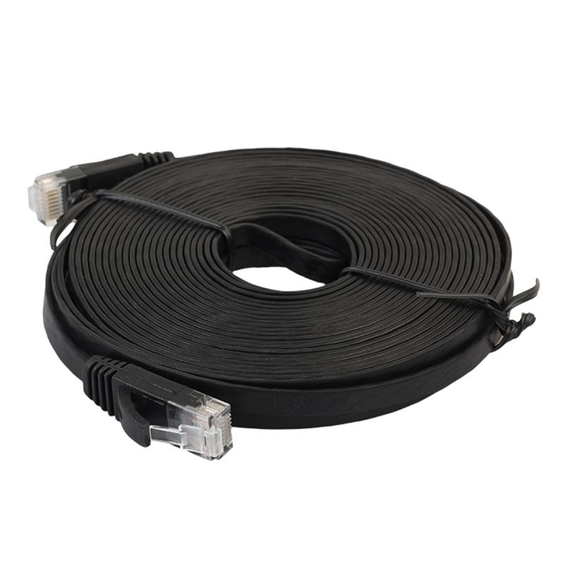 15m CAT6 Ultra-thin Flat Ethernet Network LAN Cable, Patch Lead RJ45 (Black)