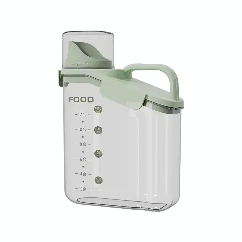 1600ml Plastic Sealed Grains Container Dry Food Storage Bin with Measuring Cup Pouring Spout(Green)