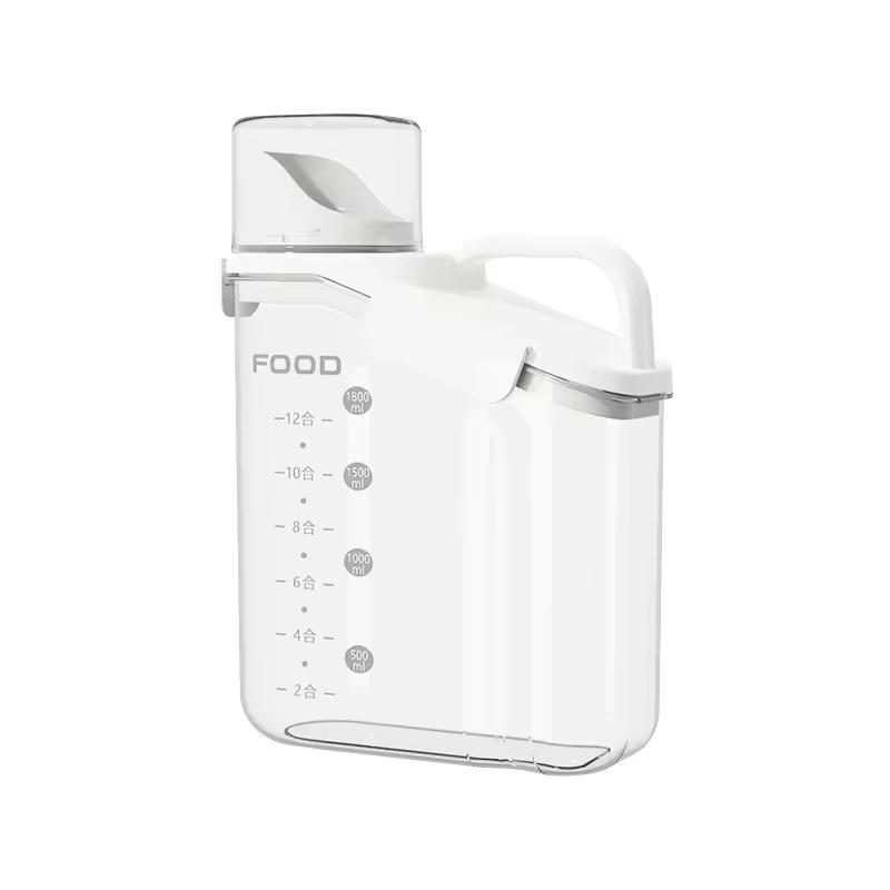 1600ml Plastic Sealed Grains Container Dry Food Storage Bin with Measuring Cup Pouring Spout(White)