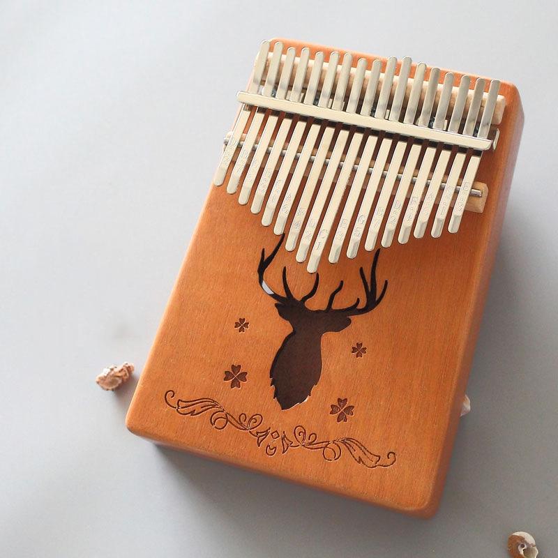 17-tone Kalimba Portable Thumb Piano, Style:Mahogany-Classic Deer