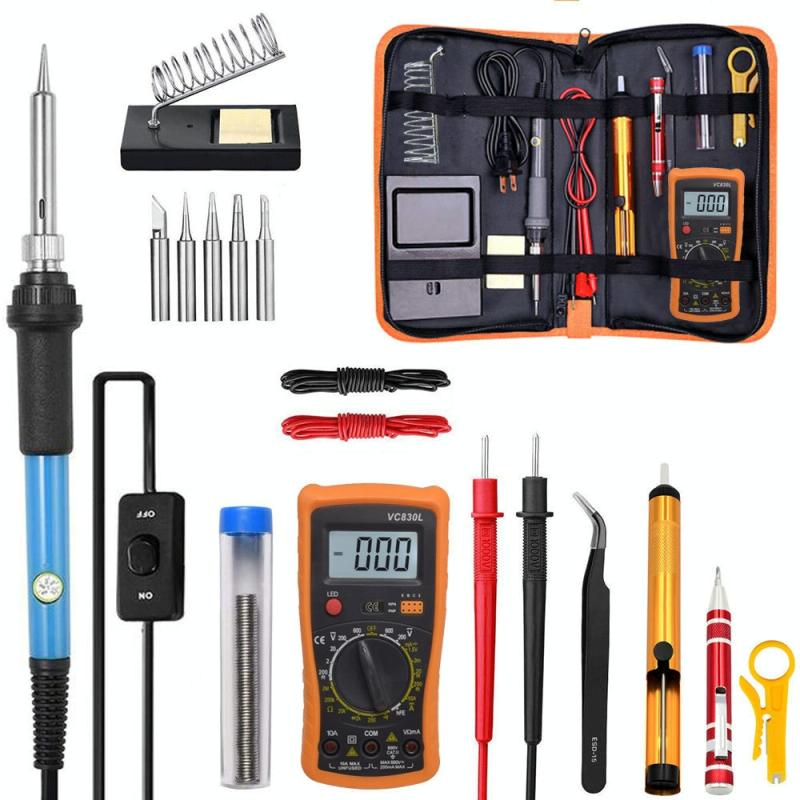 19 in 1 60W Adjustable Temperature Soldering Iron Multimeter Tool Set, Color: Blue EU Plug