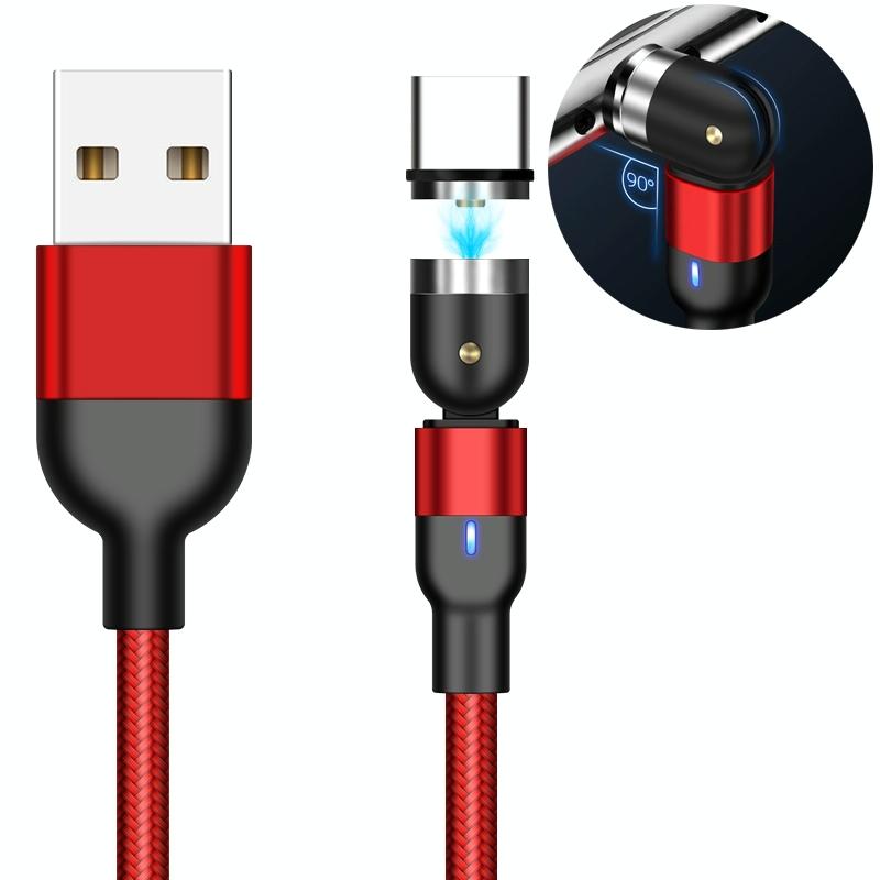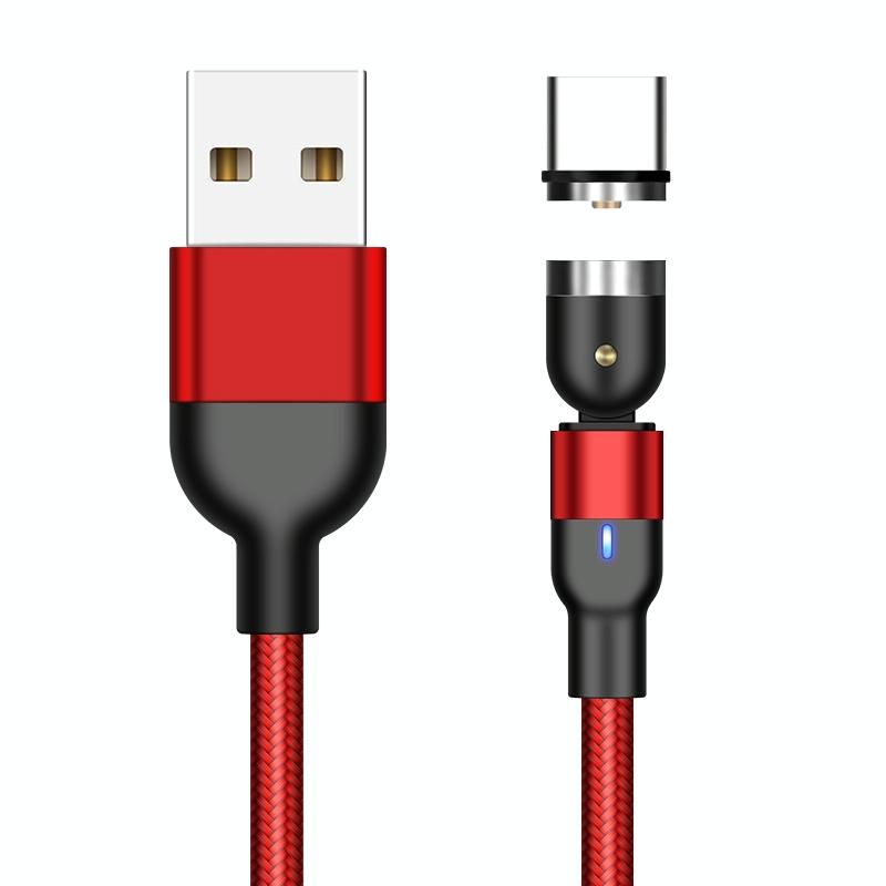 1m 2A Output USB to USB-C / Type-C Nylon Braided Rotate Magnetic Charging Cable(Red)
