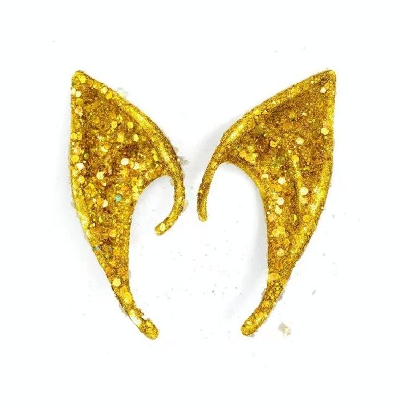 1pair Latex Elf Ears With Glitter Halloween Party Pixie Ears Cosplay Props 10cm Golden