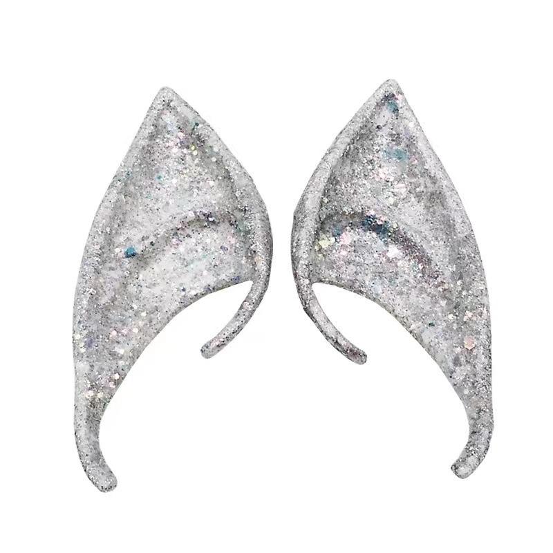1pair Latex Elf Ears With Glitter Halloween Party Pixie Ears Cosplay Props 10cm Silver
