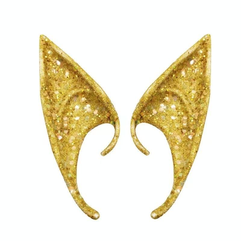 1pair Latex Elf Ears With Glitter Halloween Party Pixie Ears Cosplay Props 12cm Golden