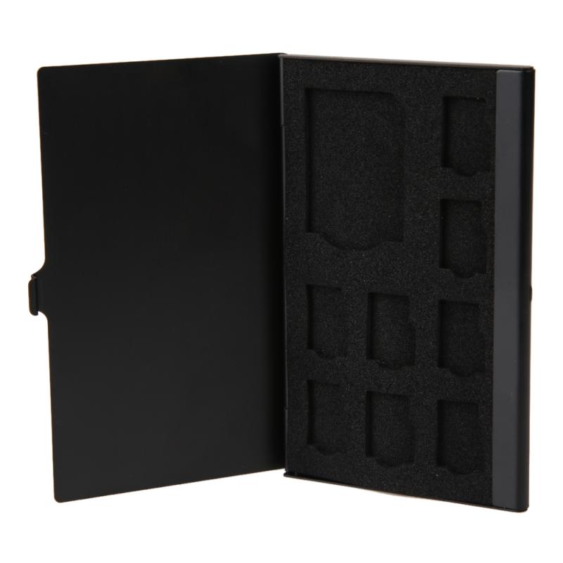 1SD+ 8TF Aluminum Micro SD Cards Holder Pin Storage Box 9 solts for SD/ SIM/TF Memory Card(Black)
