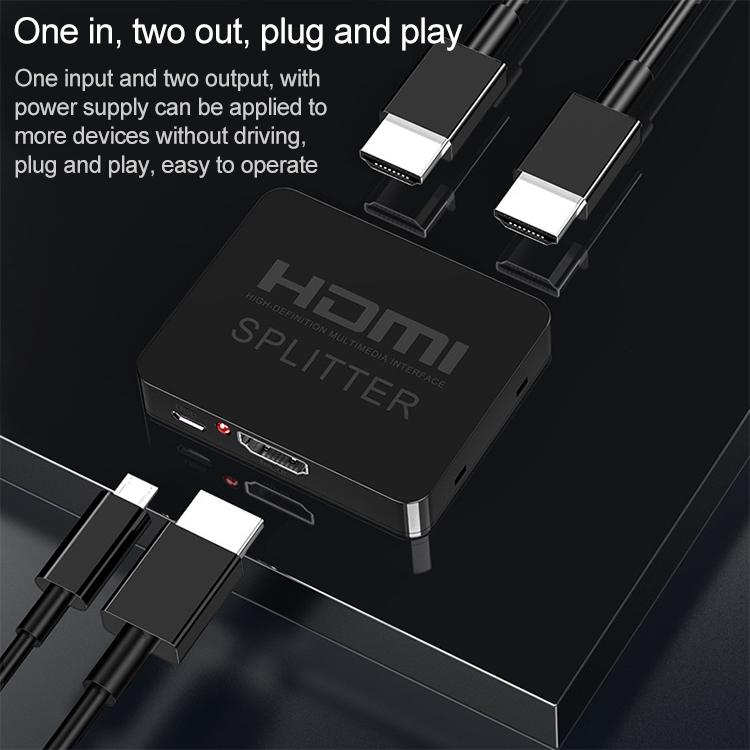1x2 Mini HDMI Amplifier Splitter, Support 3D & 4K x 2K (Black)